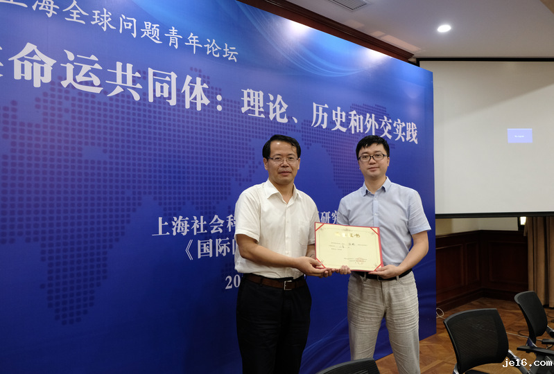 本次论坛经过三轮评审和评奖委员会匿名打分等环节评出三个等级的奖项。国际所常务副所长刘鸣研究员,复旦大学任晓教授和上海外国语大学郭树勇教授分别为获奖者颁奖。本次论坛颁发三等奖:张鹏《命运共同体视阈下的中国-东盟侨务/宗教公共外交 —— 以东南亚华人基督宗教社团为中心的考察》、李慧明《构建人类命运共同体背景下的全球治理新形势及中国的战略选择》、刘锦前《新时代中国“友情外交”战略的学理分析与价值探究》;二等奖:钟准《人类命运共同体视野下的中国“铁路外交”:历史演变与当前类型》、刘畅《“人类命运共同体”与新时代中国特色大国外交》;一等奖:李廷康《人类命运共同体理念下的安理会集体安全机制改革》。