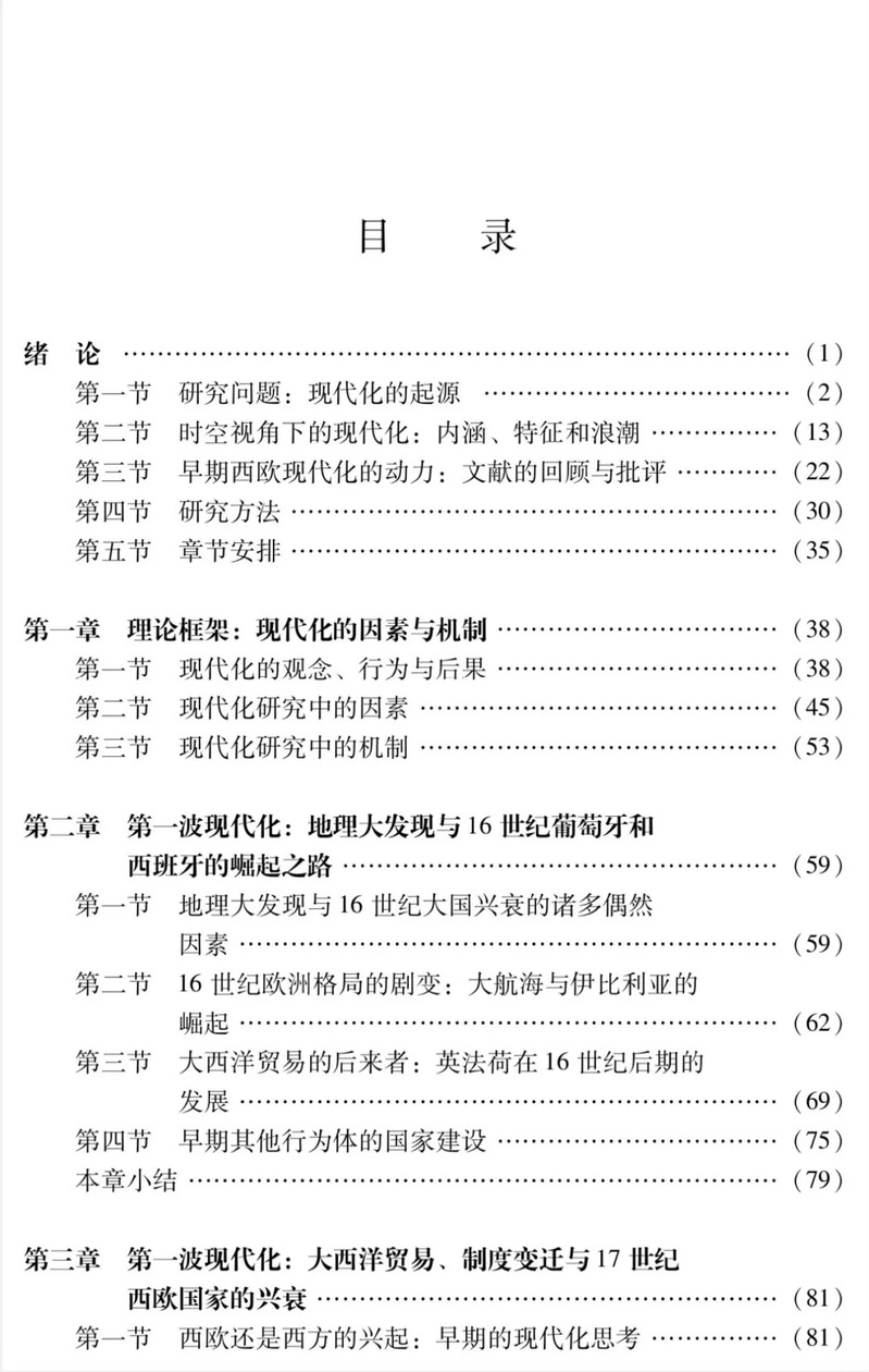 本书主要关注1492—1848年西欧国家在面对地理大发现等外部冲击时,如何通过内部改革推动现代化,并逐渐影响国家的兴衰。本书重点讨论了为何同样经历地理大发现,西欧各国在现代化的进程中表现出了明显的差异。首先,作者从现代化的理论框架入手,通过对现代化的概念界定和分期,分析了不同波次现代化涉及的时空范围和因果机制,提出了影响现代化成败的关键因素与机制。其次,作者通过实证研究对比了西班牙、英国、法国、荷兰、普鲁士、奥地利等国家在不同历史时期的现代化进程,揭示了在外部冲击之下,国家能力和利益集团这两个关键变量在推动或阻碍现代化中的作用。最后,书中总结了现代化的动力机制,并提出现代化的动态理论,为理解现代化的全球演变提供了新的视角。